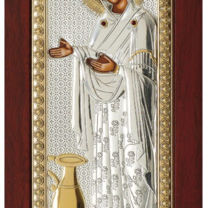 ICOANĂ ARGINTATĂ - Maica Domnului Stareța - Gerontissa - Sporul Casei - 8.5x16 cm